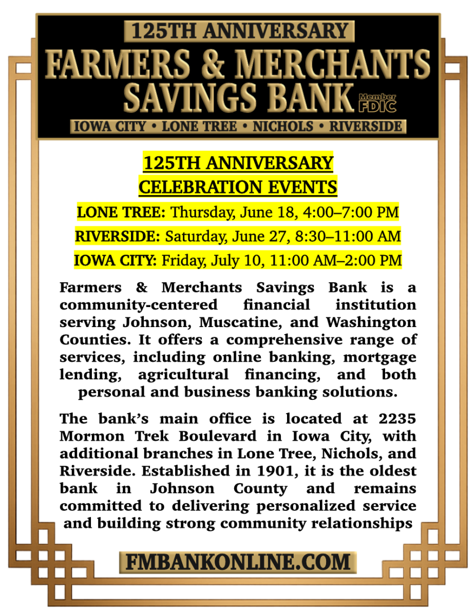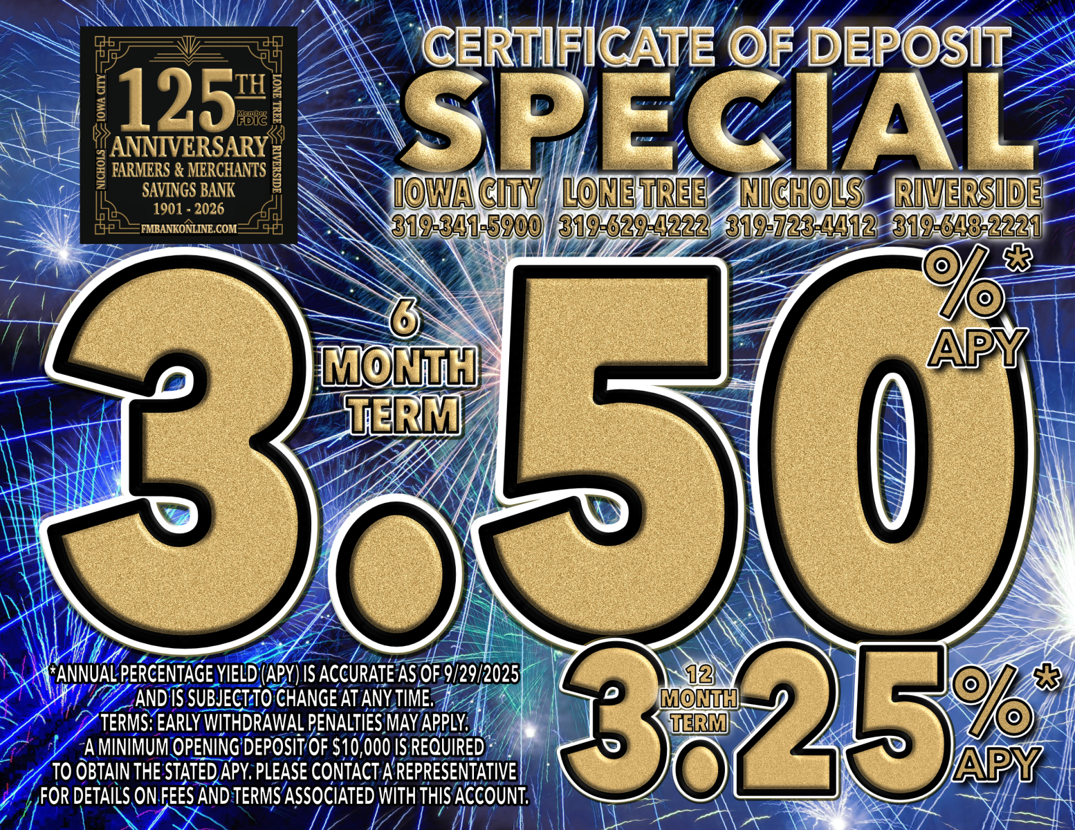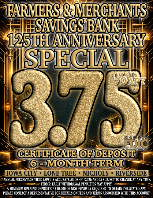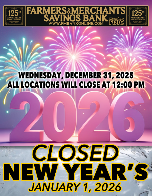 At Farmers & Merchants Savings Bank, we work every day to help fulfill the financial needs of our customers. From farmers to young families to first-time home buyers, the staff at Farmers & Merchants Savings Bank can help recommend the services that best suit your needs. We can help you with your mortgage needs, provide commercial loans, ag loans or get you set up with the latest bank technology through our Online Banking Services. Whatever your needs, you will find a solution at Farmers & Merchants Savings Bank! Come see us today
